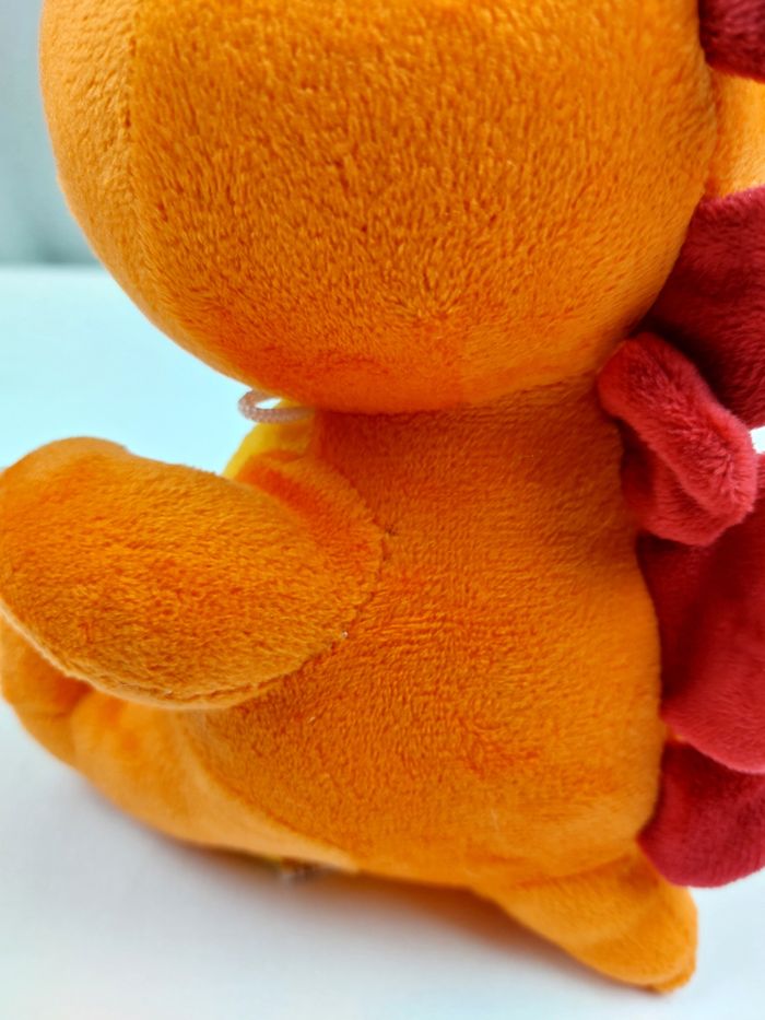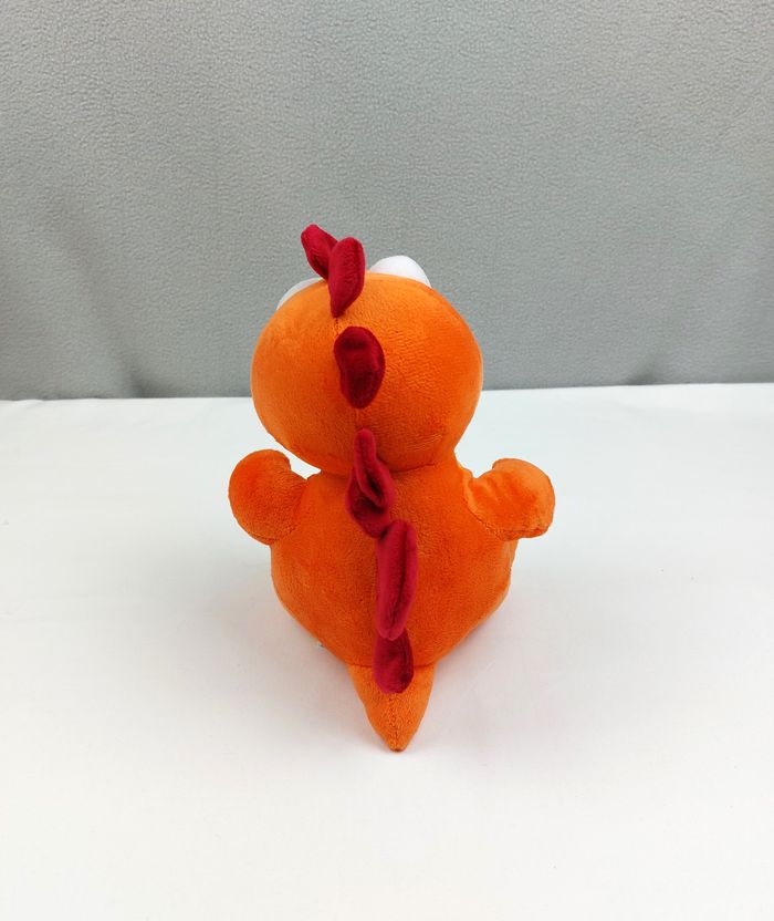 Peluche doudou dinosaure FIZZY orange crête rouge 20 cm yeux verts TBE - photo numéro 4