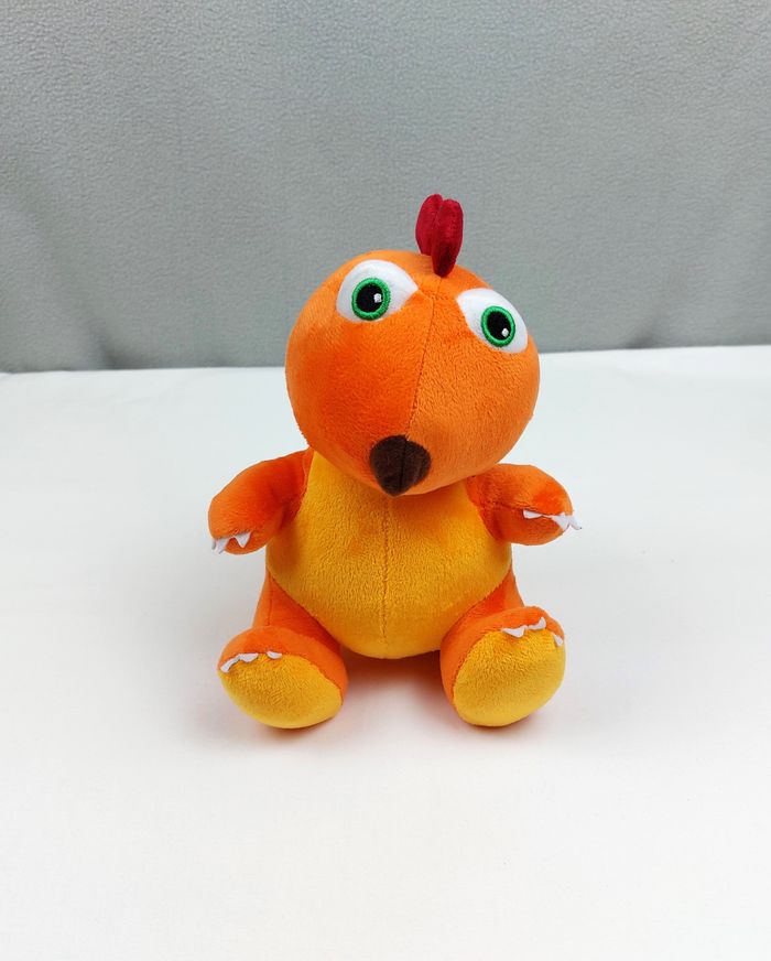 Peluche doudou dinosaure FIZZY orange crête rouge 20 cm yeux verts Très bon état, propre et doux - micro trou au-dessus de la patte (photo 4) Envoi soigné et rapide Réf A10852
