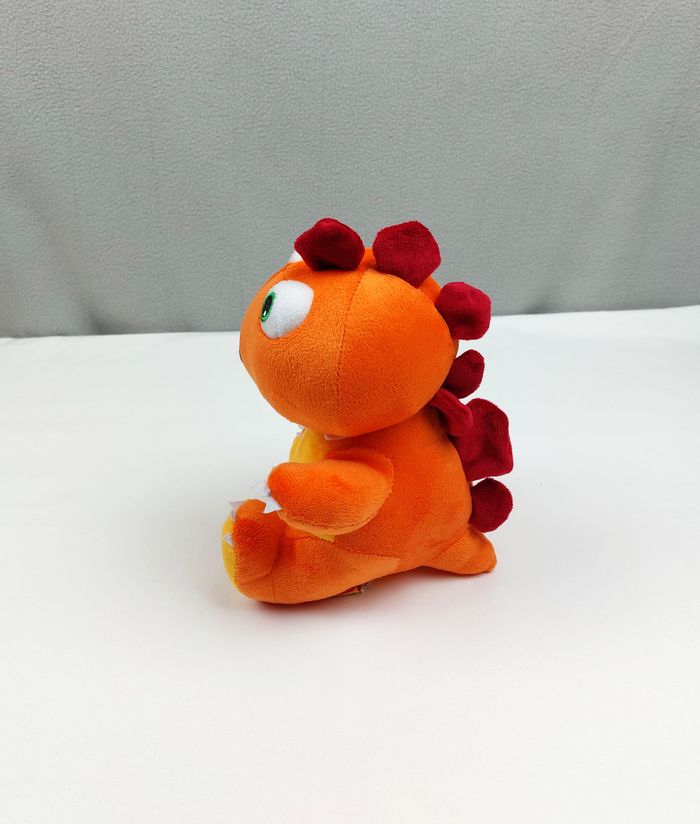Peluche doudou dinosaure FIZZY orange crête rouge 20 cm yeux verts TBE - photo numéro 3