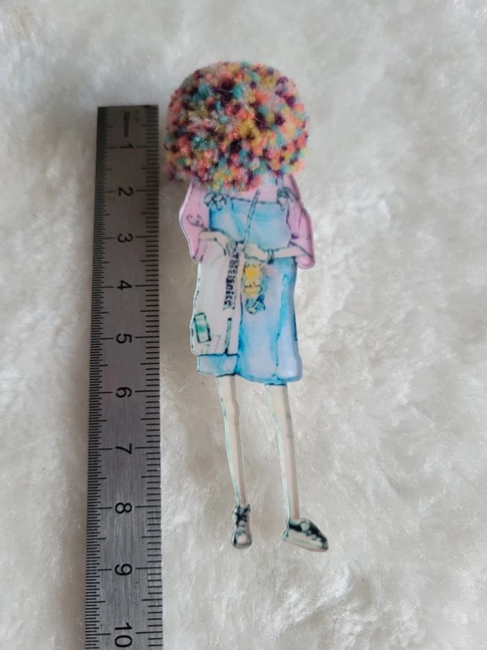 Jolie broche acrylique, originale. Tete en laine. Celle ci egayera, chapeau, veste, pull, 👜.....accessoire. neuve # modèles dans mon dressing.... Pochette 🎁 sur demande Envoi sous 24h_48h