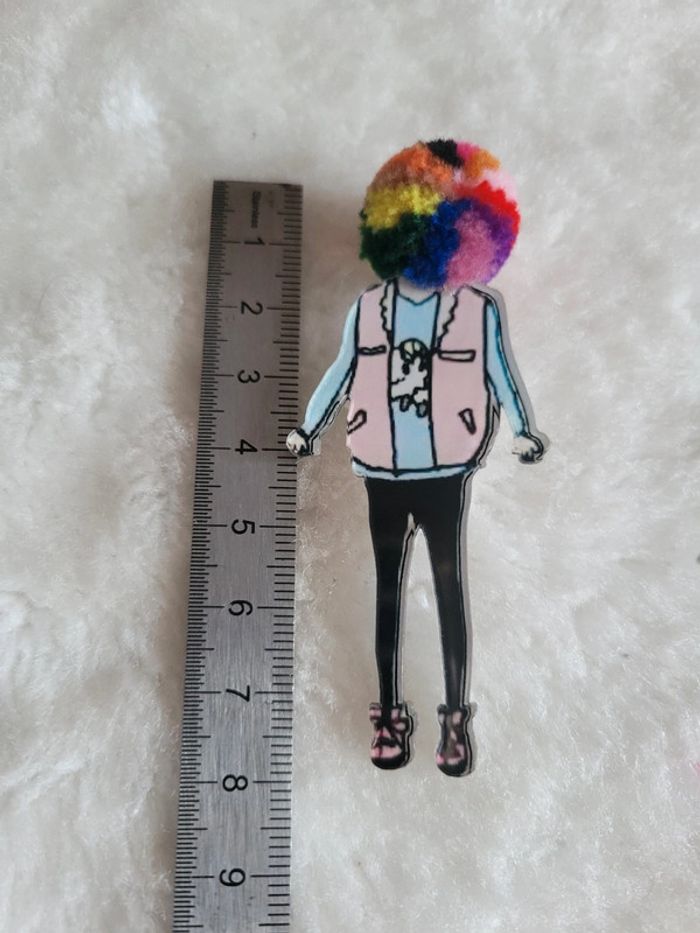 Jolie broche acrylique, originale. Tete en laine. Celle ci egayera, chapeau, veste, pull, 👜.....accessoire. neuve # modèles dans mon dressing.... Pochette 🎁 sur demande Envoi sous 24h_48h