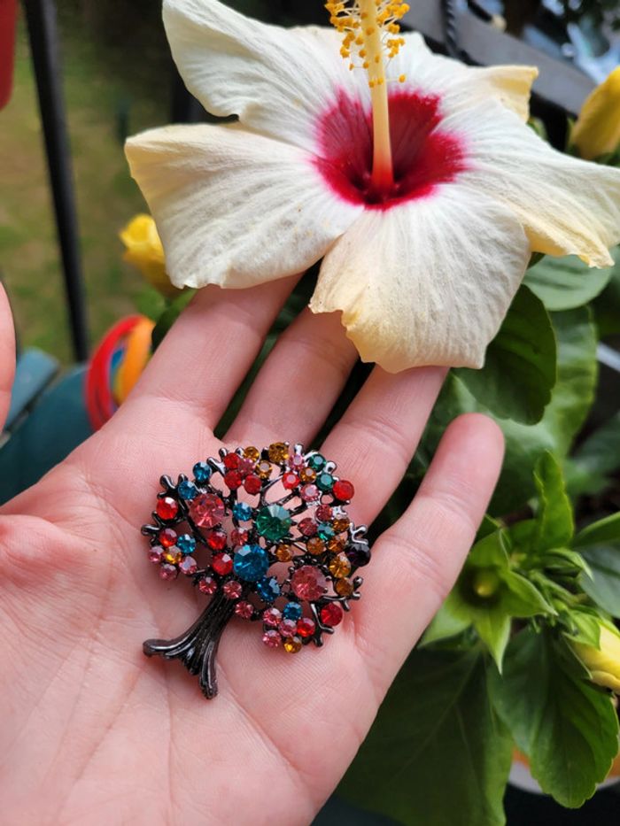 Broche arbre 🌳 de vie strass multicolores. Neuve, jamais portée. Lot possible avec # différents articles de mon dressing. Pochette cadeau 🎁 offerte sur dde. Envoi sous 24h_48h.
