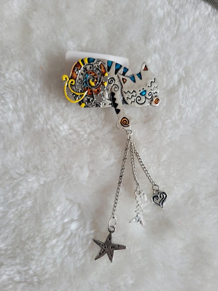 Broche chat acier silver et touche de couleur, et pampilles poisson, etoile de mer et arrête de poisson Neuve, jamais portée. Différents modèles dans mon dressing....lot possible sur dde. Pochette 🎁 offertes sur demande...