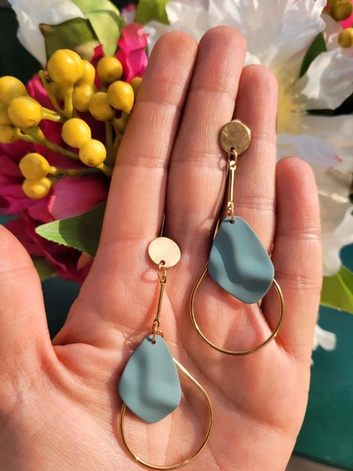 Boucles d oreilles 👂 Oreilles percées. Acier inoxydable gold Hypoallergeniques Neuve ( même modèle, en jaune moutarde, dispo dans mon dressing Envoi sous 24h/48h. Pochette cadeau🎁 offerte sur demande.