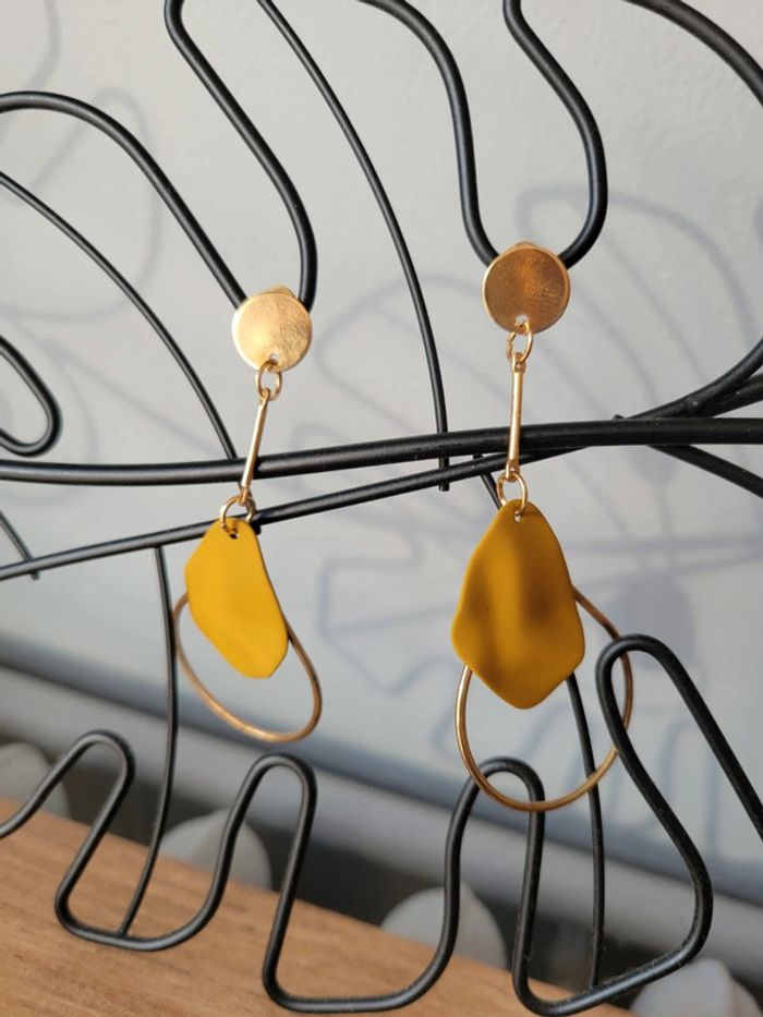 Boucles ovales feuilles jaune moutarde - photo numéro 7