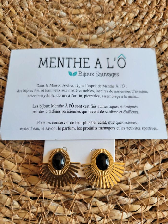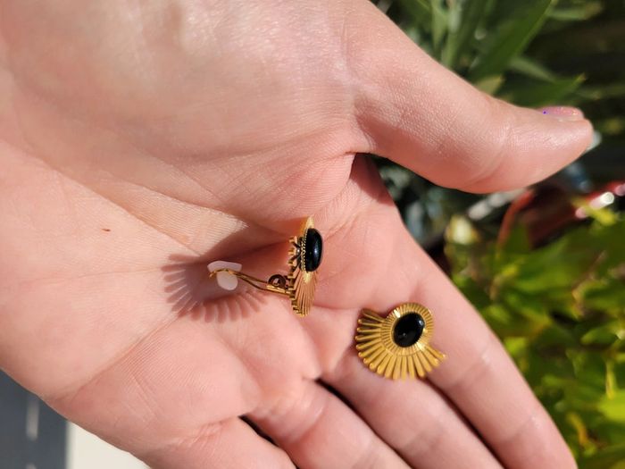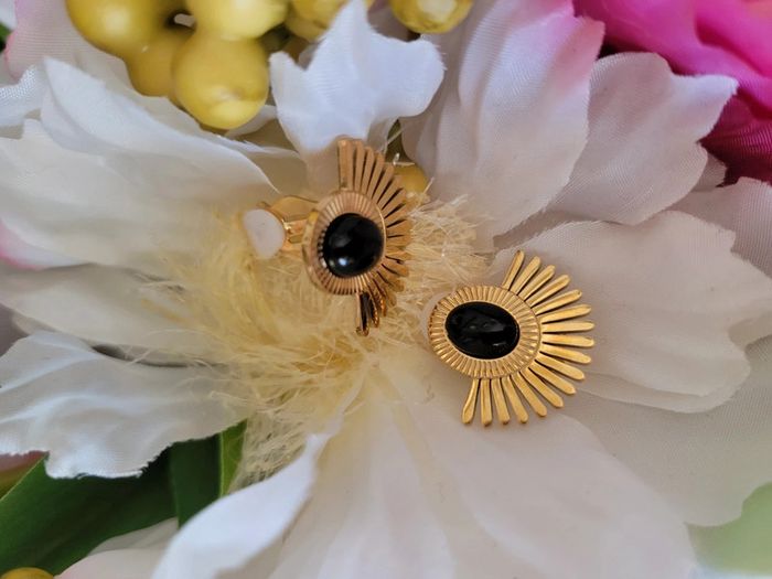 Clips d oreilles 👂 non percées. Acier inoxydable gold, hypoallergenique. Onyx : Ancré les personnes inconstante, atténue les peurs, l inquiétude, protection. Neufs, Collier de la même collection dispo.... Livre dans 1 pochette Envoi sous 24h_48h