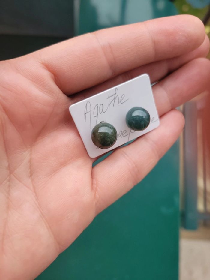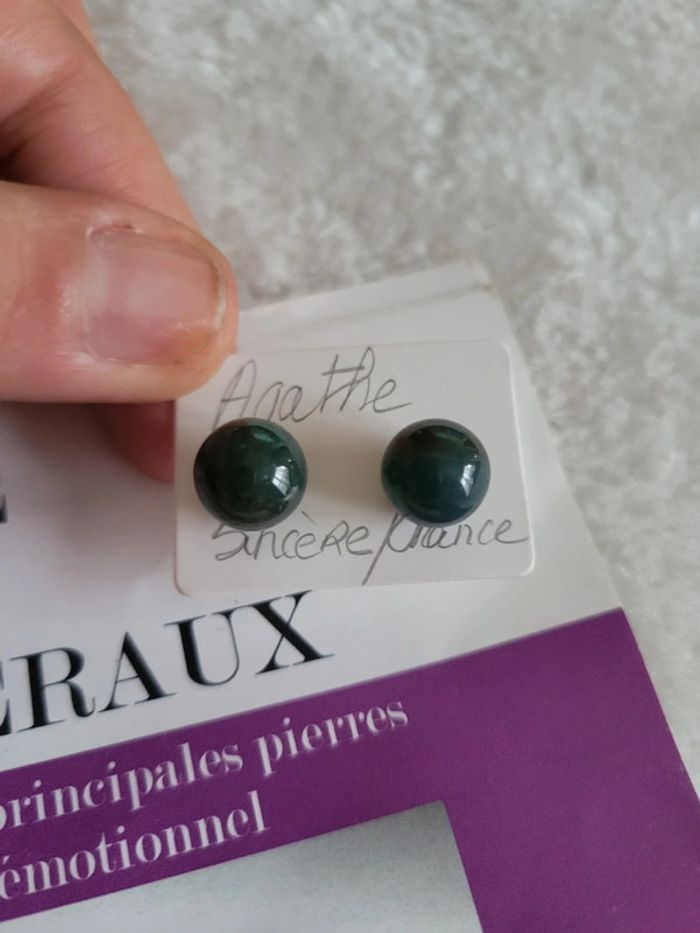Boucles d oreilles 👂Agathe Oreilles percées. Tiges en acier inoxydable. Hyppoallergenique. Neuves. # modèles dans mon dressing, pierres....turquoise, quartz rose, turquoise, hematite..., améthyste, etc) Agathe verte : permet l équilibre mental et physique et éliminer les blocages énergétiques, elle est une pierre d ancrage et de chance !!! Elle facilitera la communication et la compréhension.....!!
