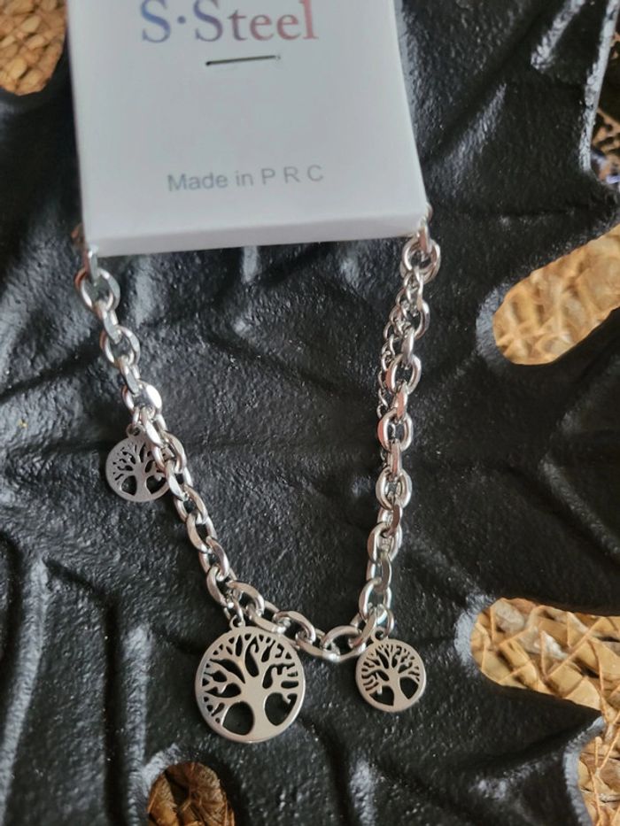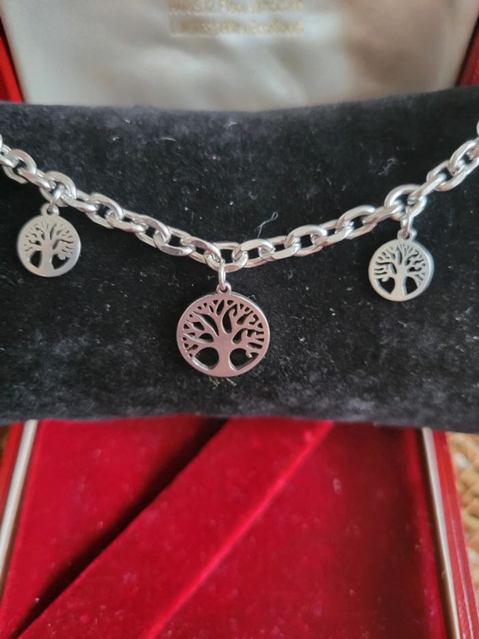 Gourmette trois arbres de vie acier - photo numéro 4