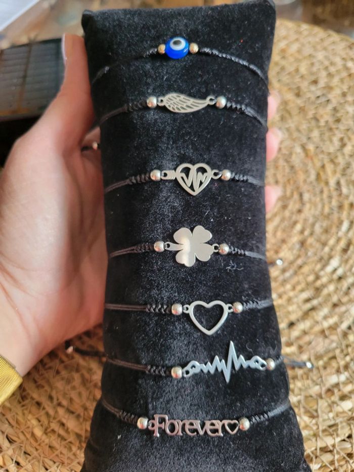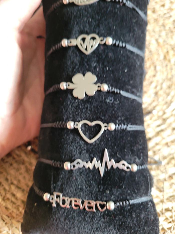 Bracelet fil de coton motif acier inoxydable - photo numéro 5