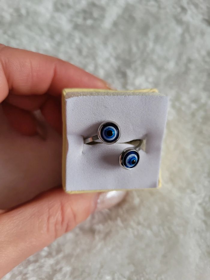 Bague 💍 oeil de turquie. Acier silver, hypoallergenique Neuve Taille 20 mm...mais reste ajustable...