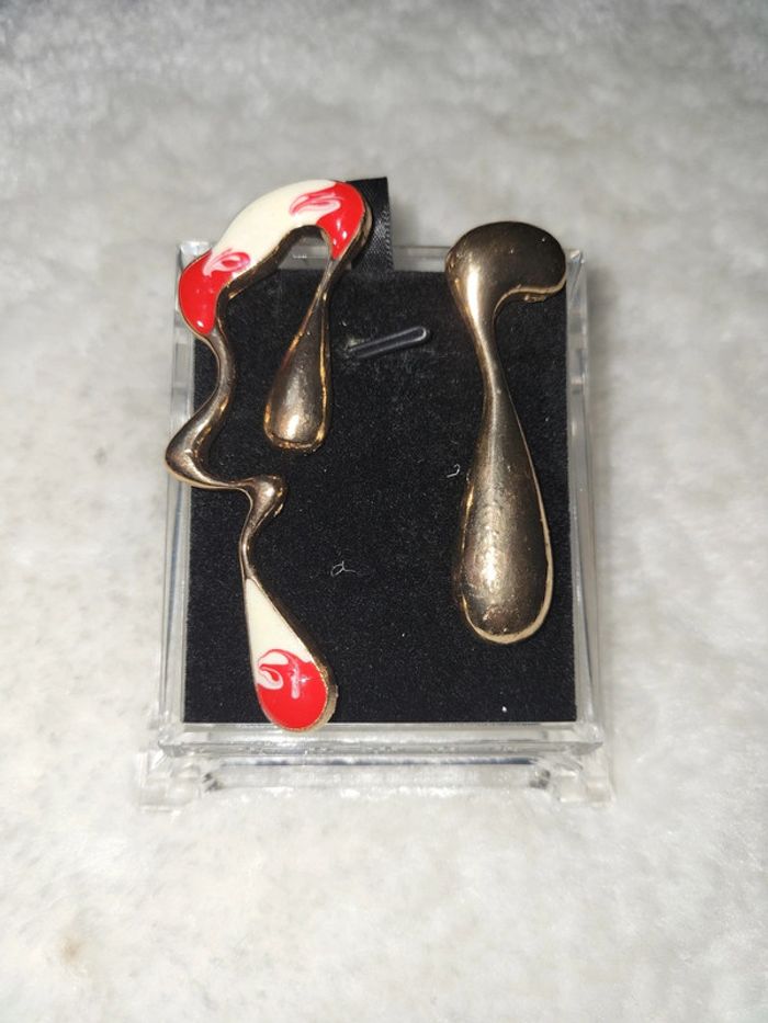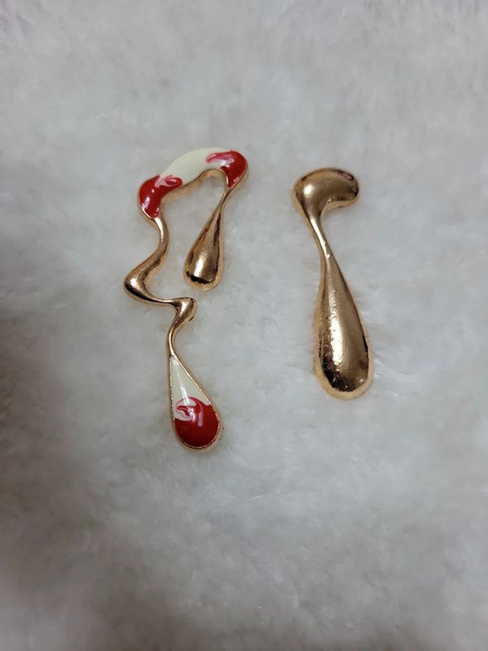 Jolie paire de boucles d'oreilles. Neuve. Oreilles percées. La plus grande ( rouge et blanc mesure 8cm) et l autre 6cm.. Elles ne sont pas lourdes...🙂🙃 Différentes couleurs dispo dans mon dressing. Envoi rapide et soigné. Privilégiez les différents modes de livraison que vinted go (les casiers sont malheureusement souvent complets...😒🤔😉