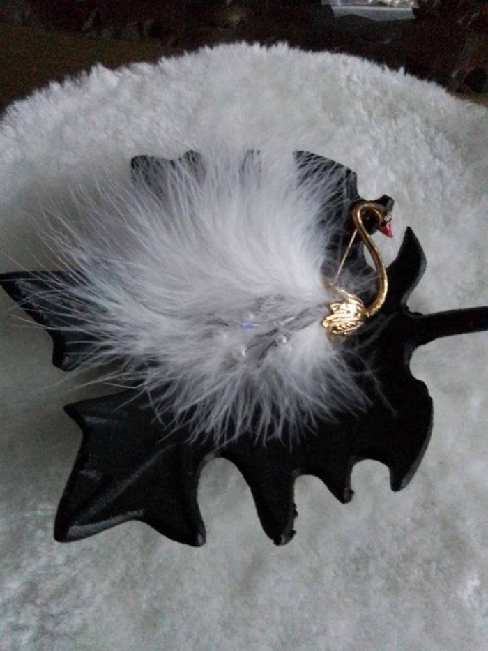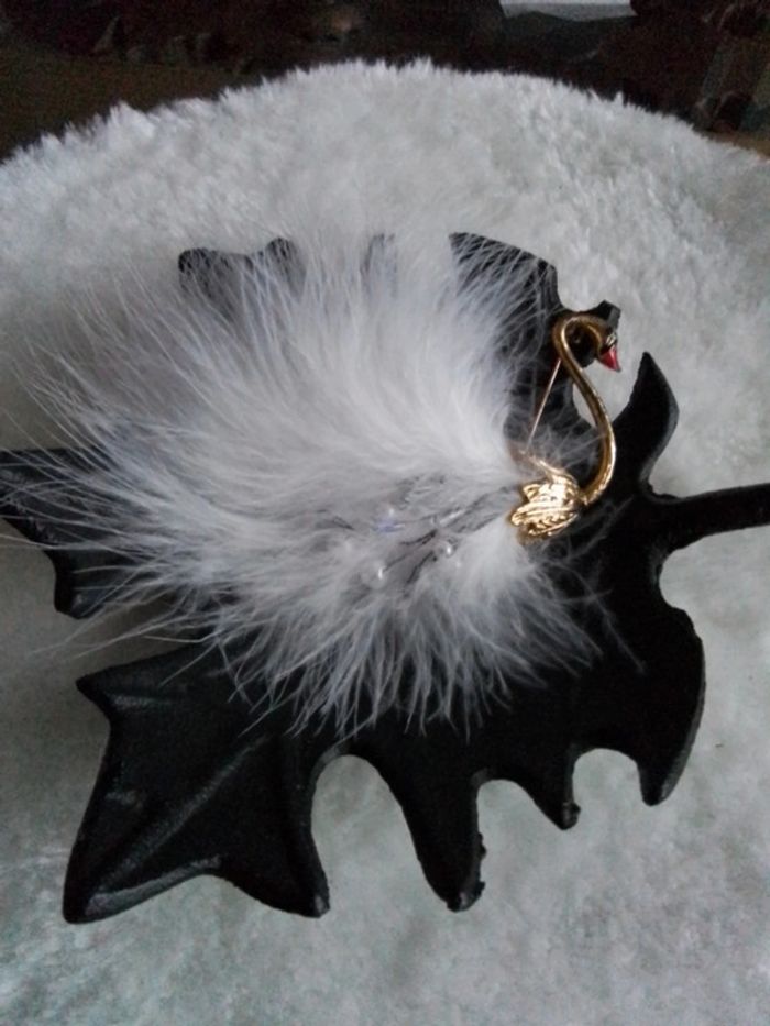 Magnifique broche " le cygne blanc" Doré et plume blanche Neuve Envoi rapide et soigné Pochette 🎁 offerte sur demande