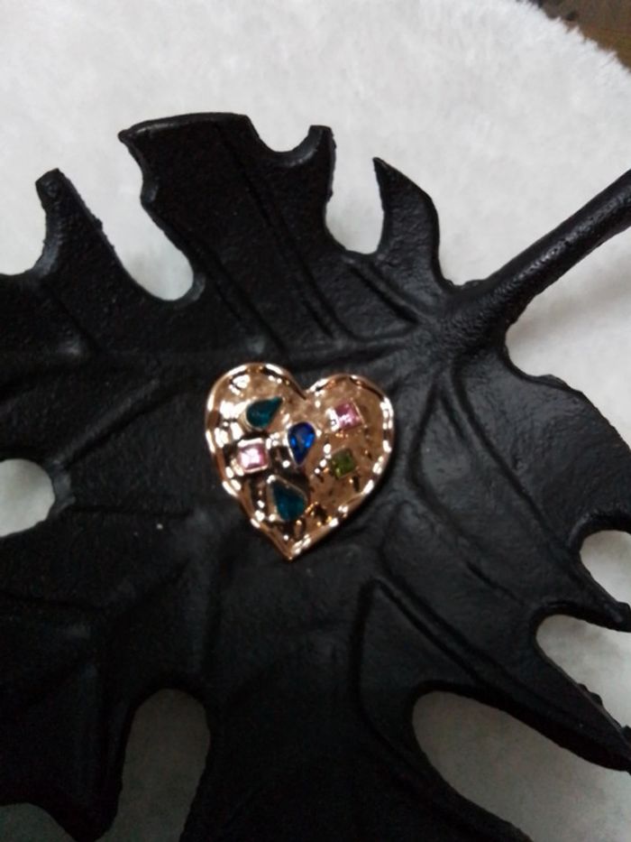 Broche cœur doré et pierres multicolores - photo numéro 6