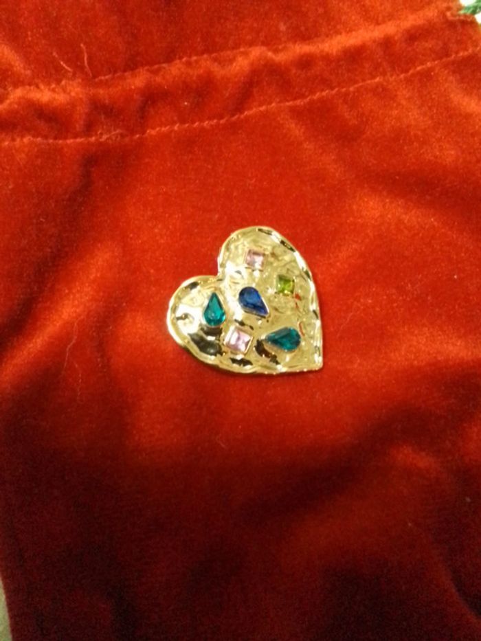 Jolie broche dorée, coeur doré et pierres multicolores Neuve, jamais portée. Originale 👍 Différents modèles dans mon dressing Envoi rapide et soigné. Pochette cadeau🎁 offerte sur demande