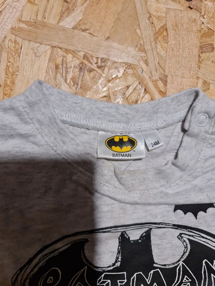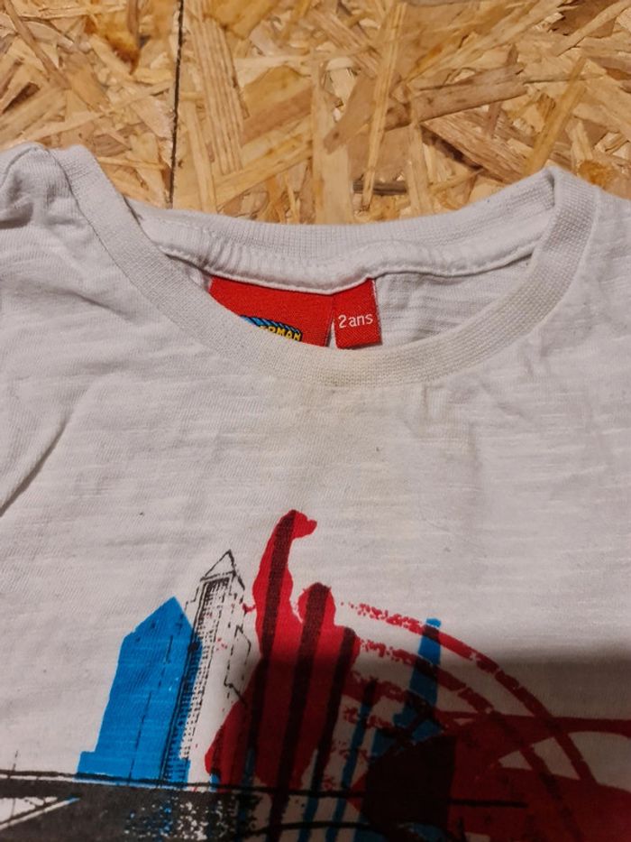 Lot de 2 tee shirt batman et superman, légère tâche au niveau du col. Taille 2 ans