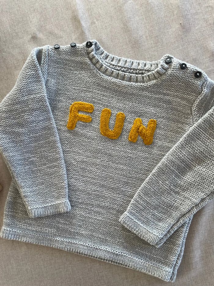 #les_ptites_pepites_garcon_24mois 📋Pull "FUN" 📏 24 mois 🛍️ Kiabi 📌 Très bon état 📦 Les colis sont déposés sous 24h du lundi au vendredi ℹ️ Pour les commandes supérieures à 50€ une réduction de 4,95€ est appliquée Suivez nous sur Instagram : les_ptites_pepites_ Un code promo vous sera envoyé dans votre messagerie ✨ 📣 Dressing entièrement trié, retrouvez toutes les catégories dans « à propos »