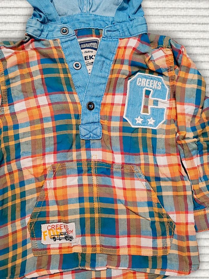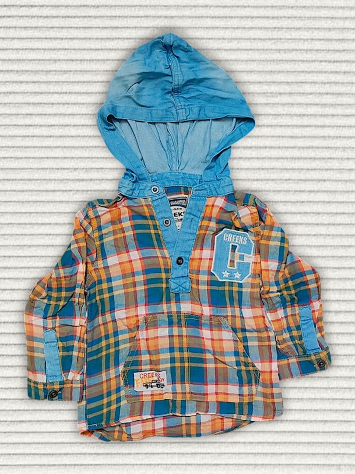 Chemise carreaux orange bleu capuche jean / Creeks - 24 mois