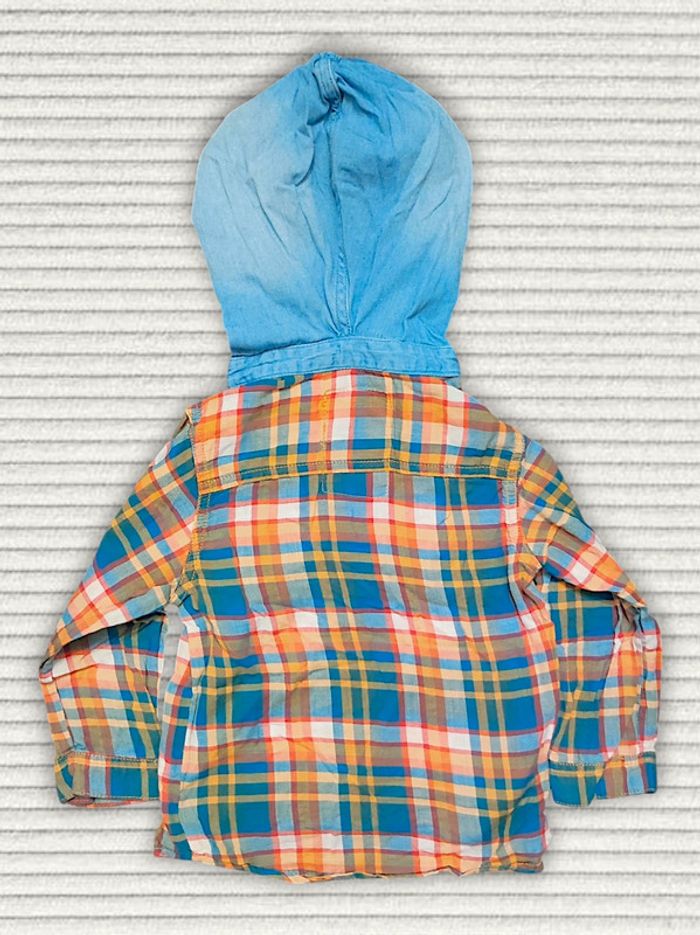 Chemise carreaux orange bleu capuche jean / Creeks - 24 mois - photo numéro 3