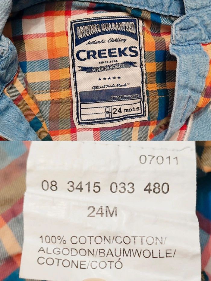 Chemise carreaux orange bleu capuche jean / Creeks - 24 mois - photo numéro 2