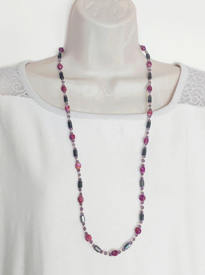 Collier / bracelet magnétique perle violet rose  - 89cm - photo numéro 2