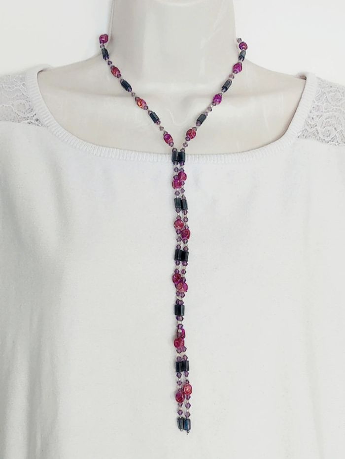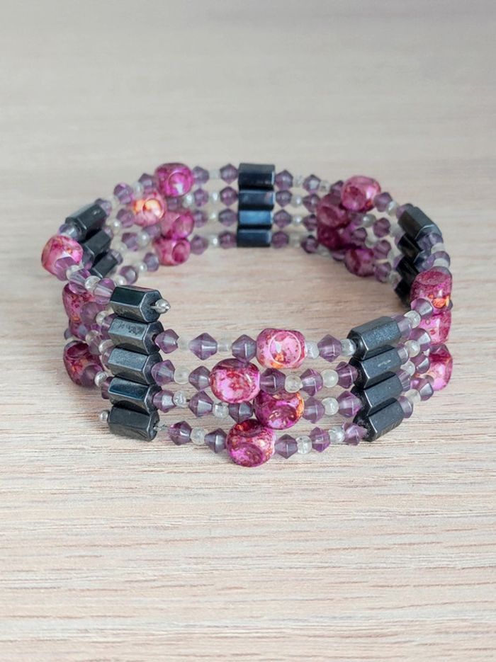 Collier / bracelet magnétique perle violet rose  - 89cm - photo numéro 4