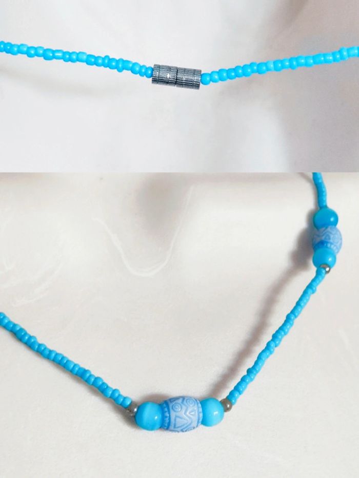 Collier ras de cou y2k perle bleu clair 🇨🇵 Fabrication Artisanale - 47cm - photo numéro 2