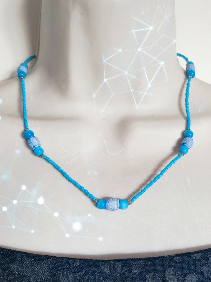 Collier ras de cou y2k perle bleu clair 🇨🇵 Fabrication Artisanale - 47cm