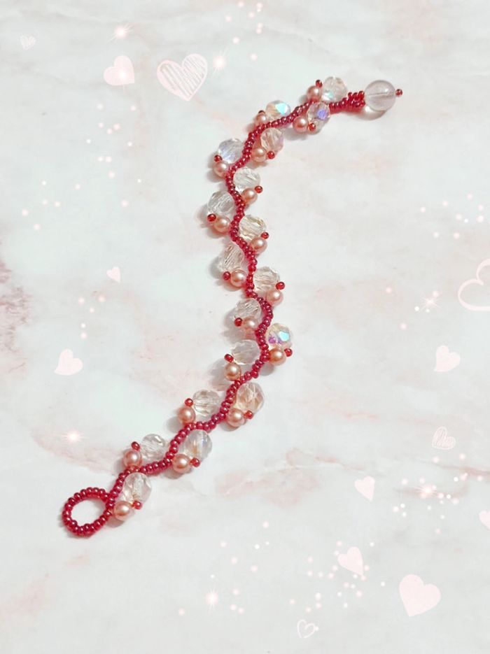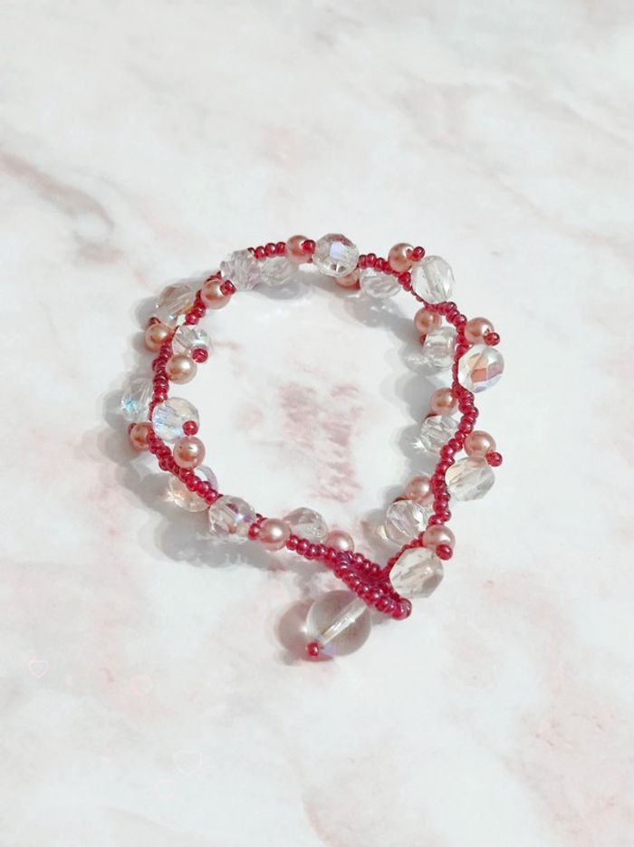 Bracelet y2k tissage perle transparent bordeaux holographique 🇨🇵 Fabrication Artisanale - 16cm