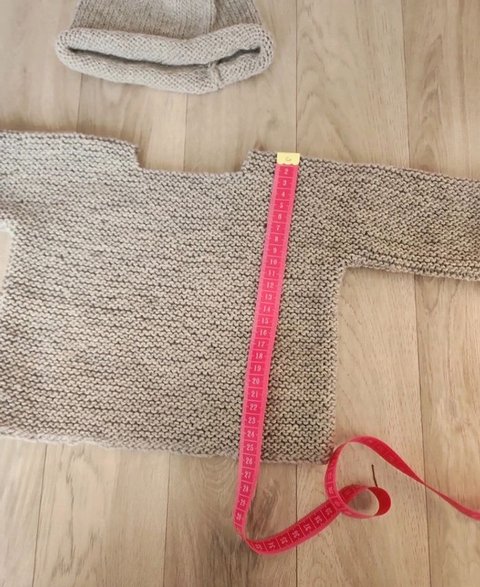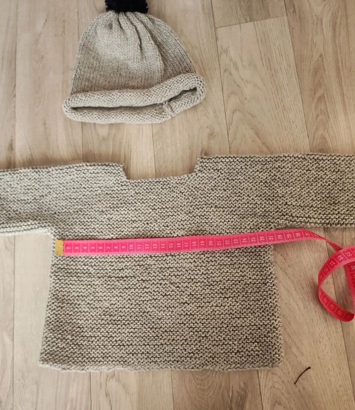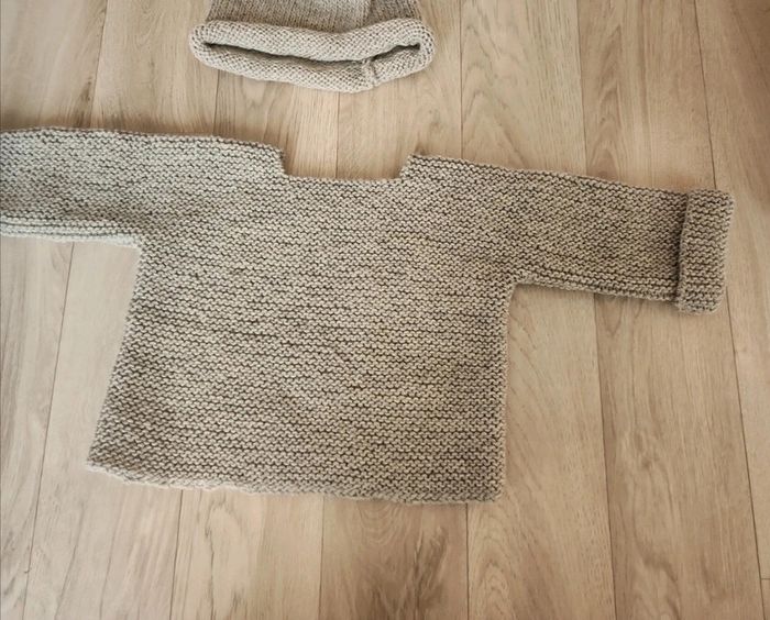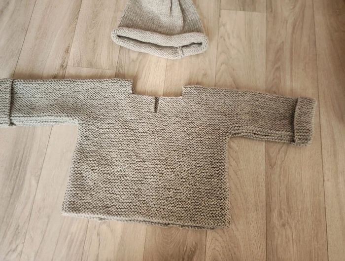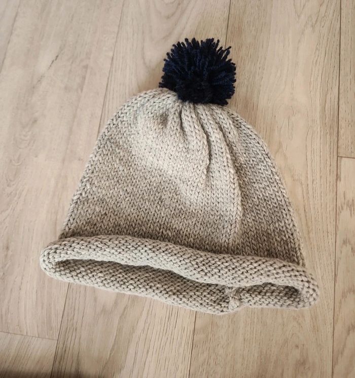 Fait main. En laine Gris et pompon bleu marine Taille environ 6 mois cf mesures