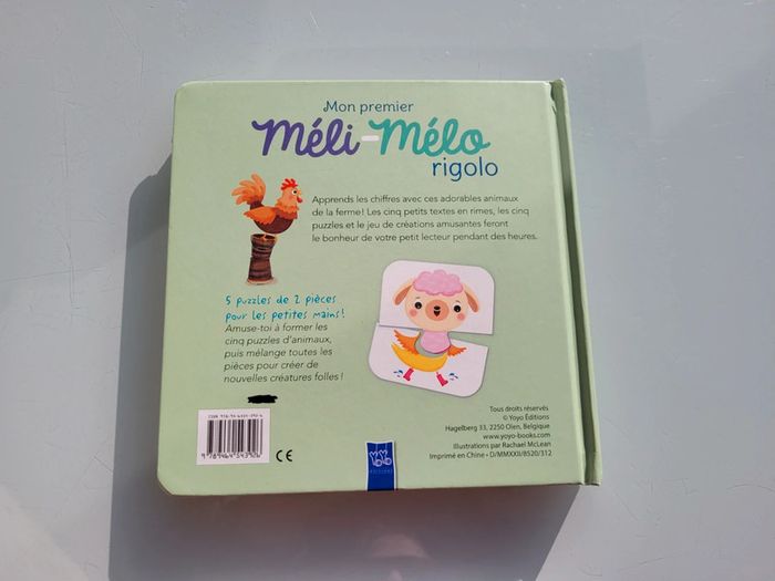 MON PREMIER MÉLI-MÉLO RIGOLO 1, 2, 3 À LA FERME 5 PUZZLES DE 2 PIÈCES Une seule pièce présente une pliure (le mouton) sinon en très bon état Mes autres livres enfants : #livreenfantmooglou