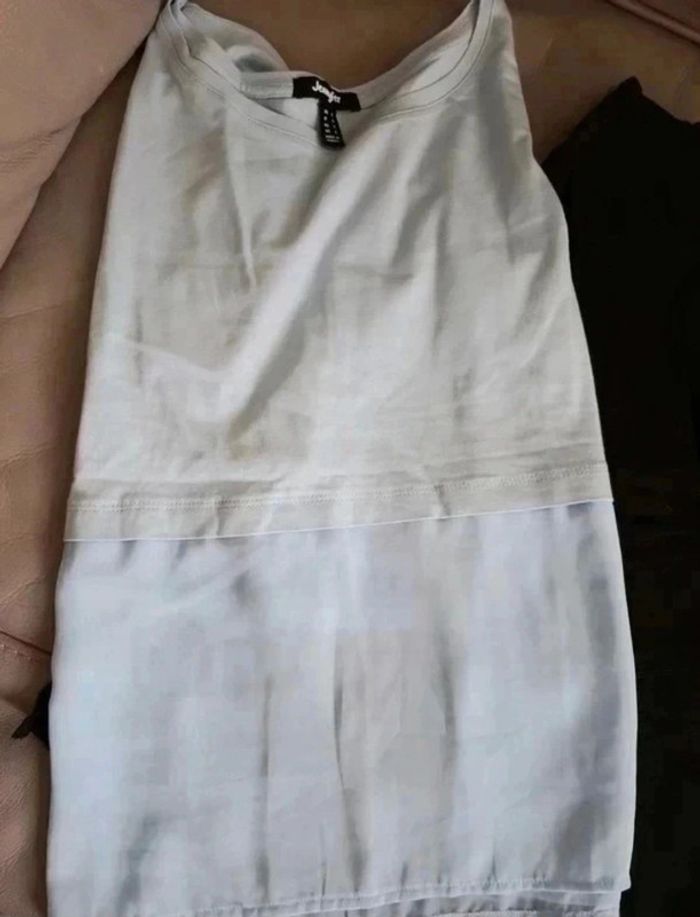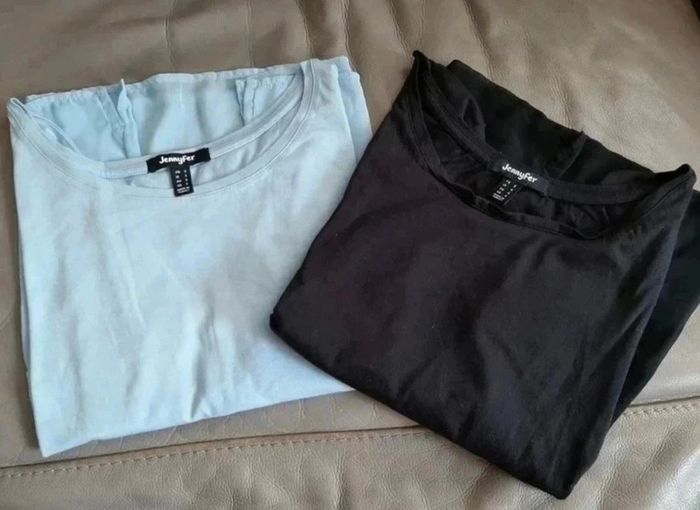 Lot de deux hauts manches 3/4. Un bleu ciel et un noir. Taille S de chez Jennyfer. La moitié du haut est en tissu et le bas en voile transparent. Le bleu porté 1 fois, le noir quelques fois. Ils sont en très bon état (photos fidèles). Je les vends au prix de 12 euros. #TailleS36marine