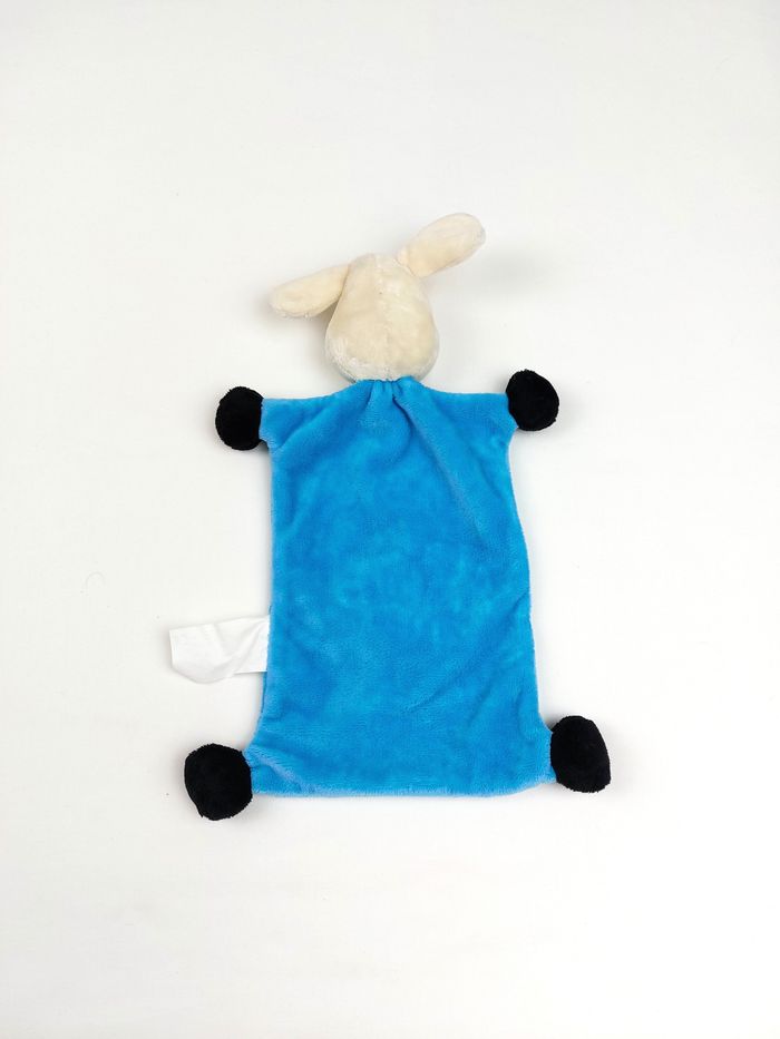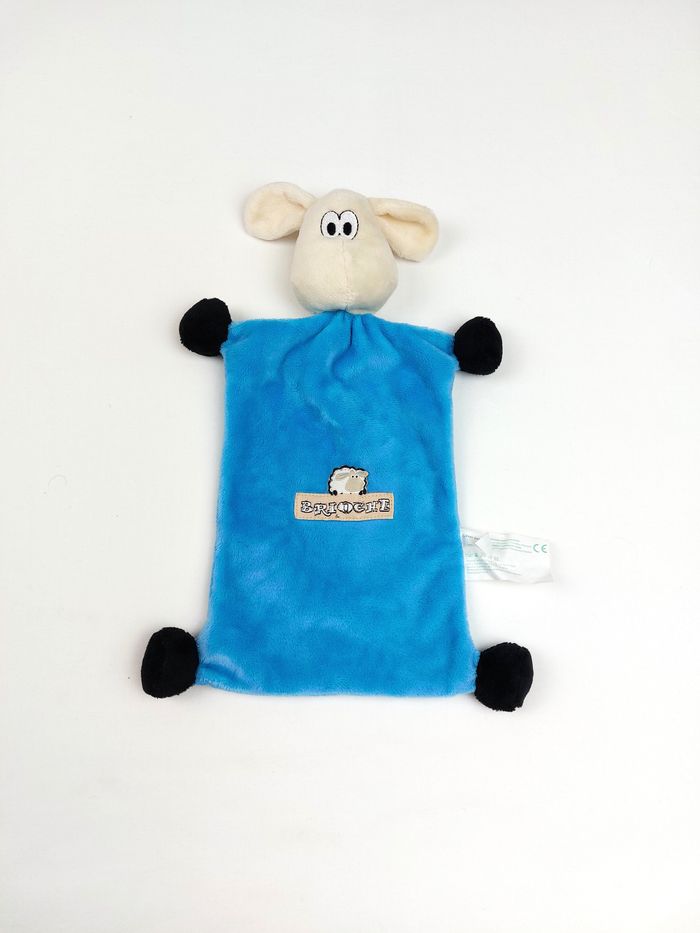 Doudou plat chien mouton Brioche la Halle bleu blanc pattes noires TTBE