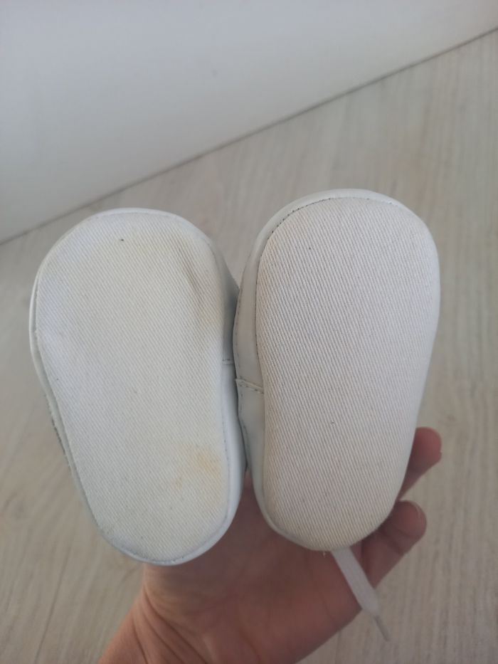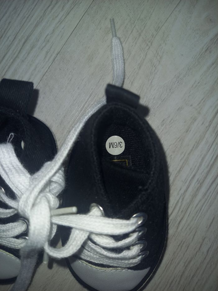 Chaussures pour bébé taille 3-6 mois Très bon état juste un peu jaunis en dessous mais ça devrait partir à la machine