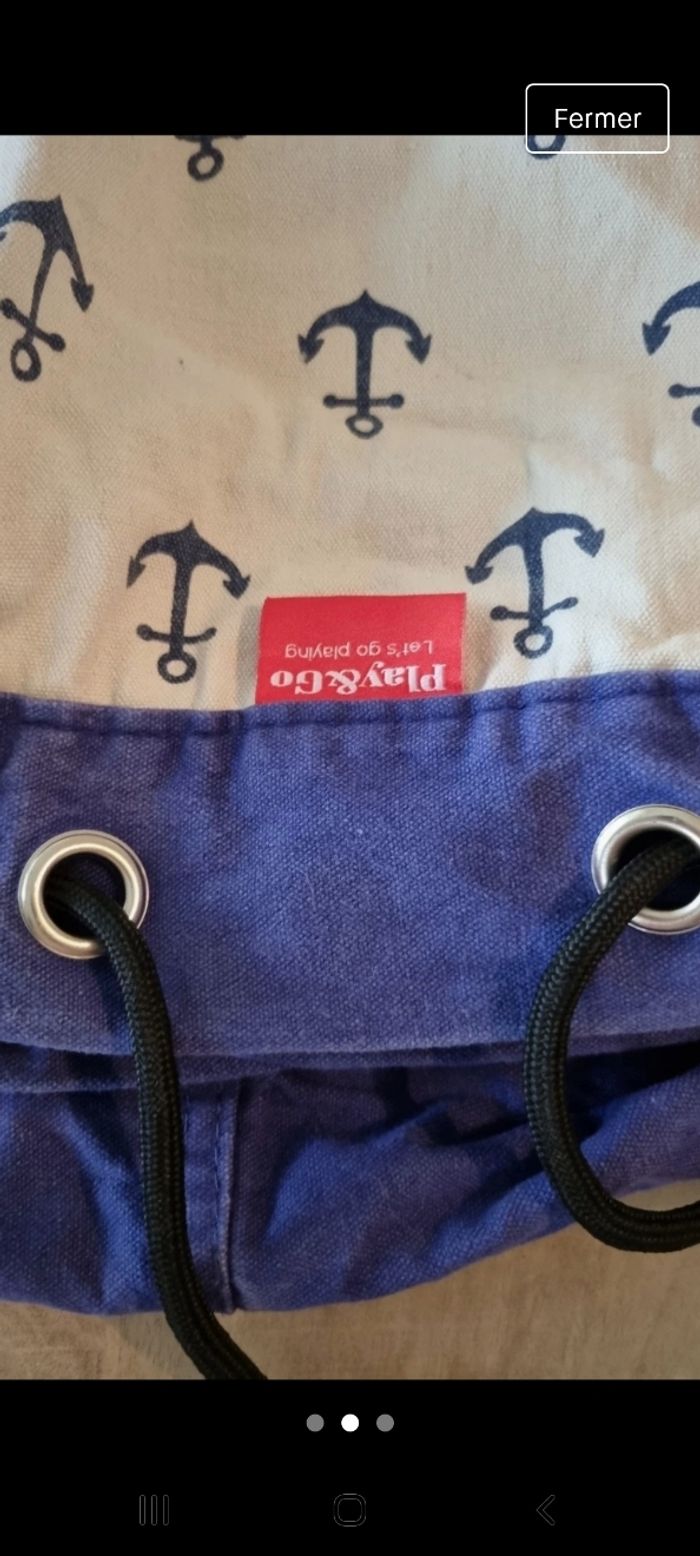 Acheté d'occasion comme neuf Jamais servit. Se transforme en sac besace pour le refermer. Très pratique
