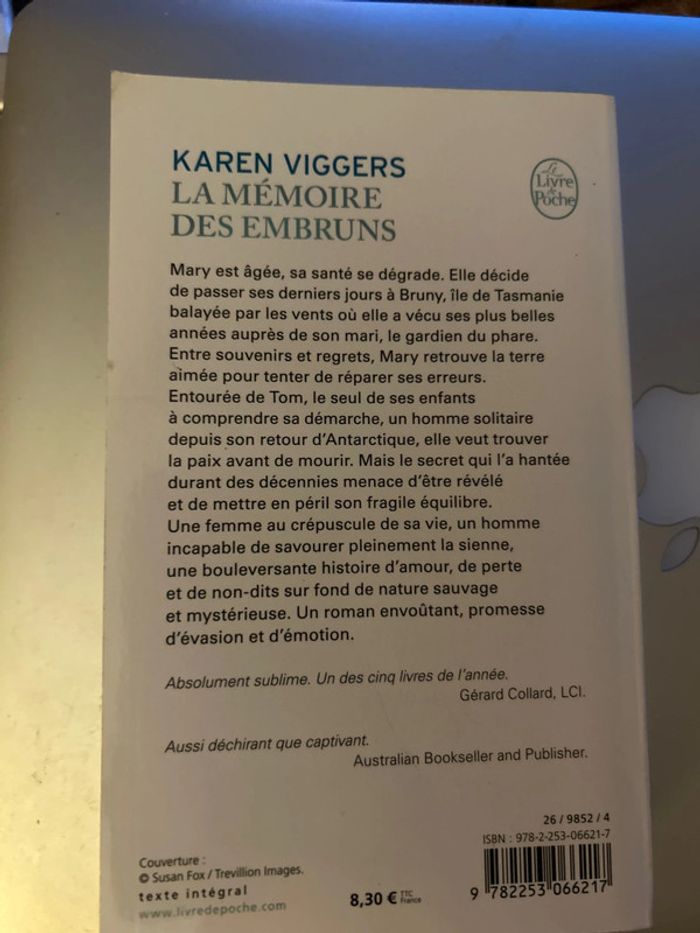 Mary est âgée, sa santé se dégrade. Elle décide de passer ses derniers jours à Bruny, île de Tasmanie balayée par les vents où elle a vécu ses plus belles années auprès de son mari, le gardien du phare. Entre souvenirs et regrets, Mary retrouve la terre aimée pour tenter de réparer ses erreurs. Entourée de Tom, le seul de ses enfants à comprendre sa démarche, un homme solitaire depuis son retour d'Antarctique, elle veut trouver la paix avant de mourir. Mais le secret qui l'a hantée durant des décennies menace d'être révélé et de mettre en péril son fragile équilibre. Une femme au crépuscule de sa vie, un homme incapable de savourer pleinement la sienne, une bouleversante histoire d'amour, de perte et de non-dits sur fond de nature sauvage et mystérieuse. Un roman envoûtant, promesse d'évasion et d'émotion.