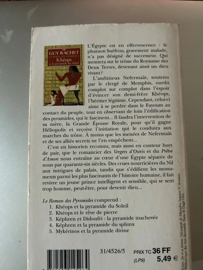L'Égypte est en effervescence : le pharaon Snéfrou, gravement malade, n'a pas désigné de successeur. Qui montera sur le trône du Royaume des Deux Terres, devenant ainsi un dieu vivant? L'ambitieux Nefermaât, soutenu par le clergé de Memphis, ourdit complot sur complot dans l'espoir d'évincer son demi-frère Khéops, l'héritier légitime. Cependant, celui-ci aime à se perdre dans le Fayoum au ntact du peuple, tout en observant de loin l'édification s pyramides, qui le fascinent... Il faudra l'intervention de mère, la Grande Épouse Royale, pour qu'il gagne liopolis et reçoive l'initiation qui le conduira aux urches du trône. À moins que les menées de Nefermaât de ses alliés secrets ne l'en empêchent...
