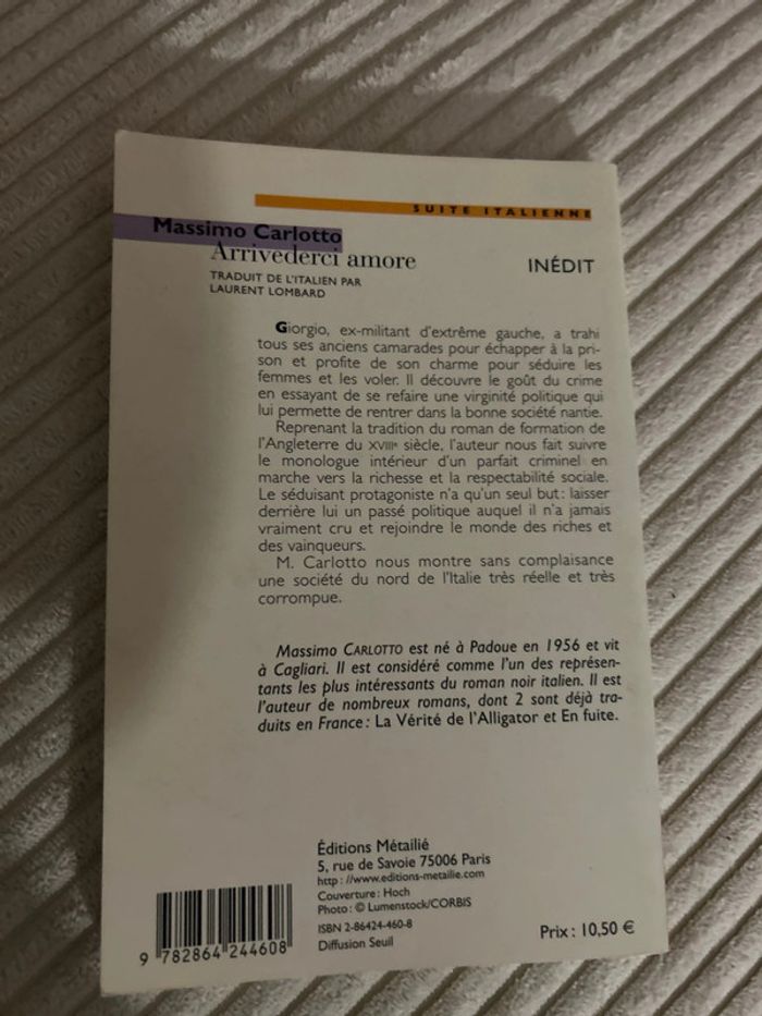 Giorgio, ex-militant d'extrême gauche, a trahi tous ses anciens camarades pour échapper à la prison et profite de son charme pour séduire les femmes et les voler. Il découvre le goût du crime en essayant de se refaire une virginité politique qui lui permette de rentrer dans la bonne société nantie. Reprenant la tradition du roman de formation de l'Angleterre du XVille siècle, l'auteur nous fait suivre le monologue intérieur d'un parfait criminel en marche vers la richesse et la respectabilité sociale. Le séduisant protagoniste n'a qu'un seul but: laisser derrière lui un passé politique auquel il n'a jamais vraiment cru et rejoindre le monde des riches et des vainqueurs. M. Carlotto nous montre sans complaisance une société du nord de l'Italie très réelle et très corrompue.