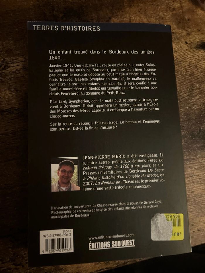 Un enfant trouvé dans le Bordeaux des années 1840... Janvier 1841. Une gabare fait route en pleine nuit entre Saint-Estephe et les quais de Bordeaux, porteuse d'un bien étrange paquet que le matelot dépose au petit matin à l'hôpital des En-fants-Trouvés. Baptisé Symphorien, vacciné, le malheureux va connaître le sort des enfants abandonnés. Il sera confié à une famille nourricière en Médoc qui travaille pour le banquier bordelais Feuerberg, au domaine du Petit-Bosc. Plus tard, Symphorien, dont le matelot a retrouvé la trace, revient à Bordeaux. Il doit apprendre un métier; admis à l'École des Mousses des frères Laporte, il embarque à l'aventure sur un chasse-marée. Sur la route du retour, il fait naufrage. Le bateau et l'équipage sont perdus. Est-ce la fin de l'histoire?