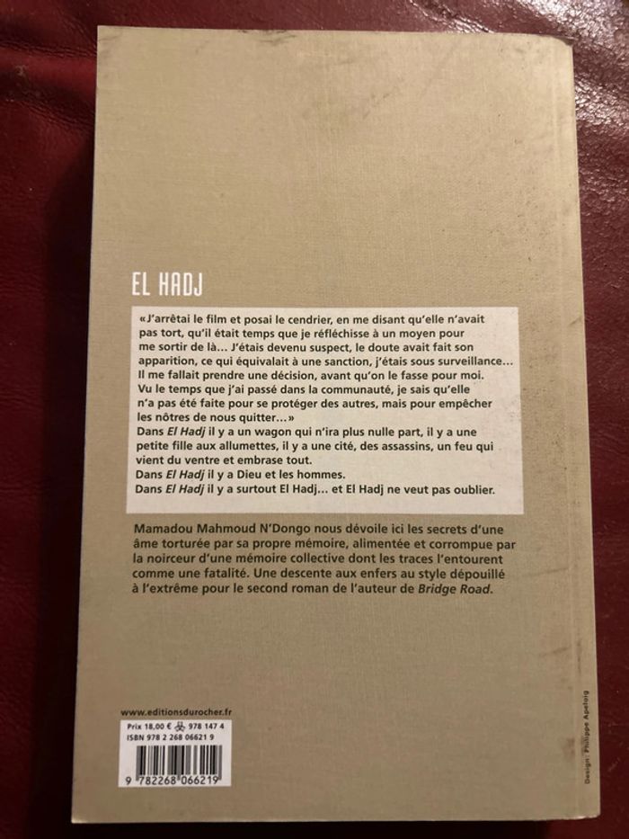 «J'arrêtai le film et posai le cendrier, en me disant qu'elle n'avait pas tort, qu'il était temps que je réfléchisse à un moyen pour me sortir de là... J'étais devenu suspect, le doute avait fait son apparition, ce qui équivalait à une sanction, j'étais sous surveillance... Il me fallait prendre une décision, avant qu'on le fasse pour moi. Vu le temps que j'ai passé dans la communauté, je sais qu'elle n'a pas été faite pour se protéger des autres, mais pour empêcher les nôtres de nous quitter...» Dans El Hadj il y a un wagon qui n'ira plus nulle part, il y a une petite fille aux allumettes, il y a une cité, des assassins, un feu qui vient du ventre et embrase tout. Dans El Hadj il y a Dieu et les hommes. Dans El Hadj il y a surtout El Hadj... et El Hadj ne veut pas oublier.