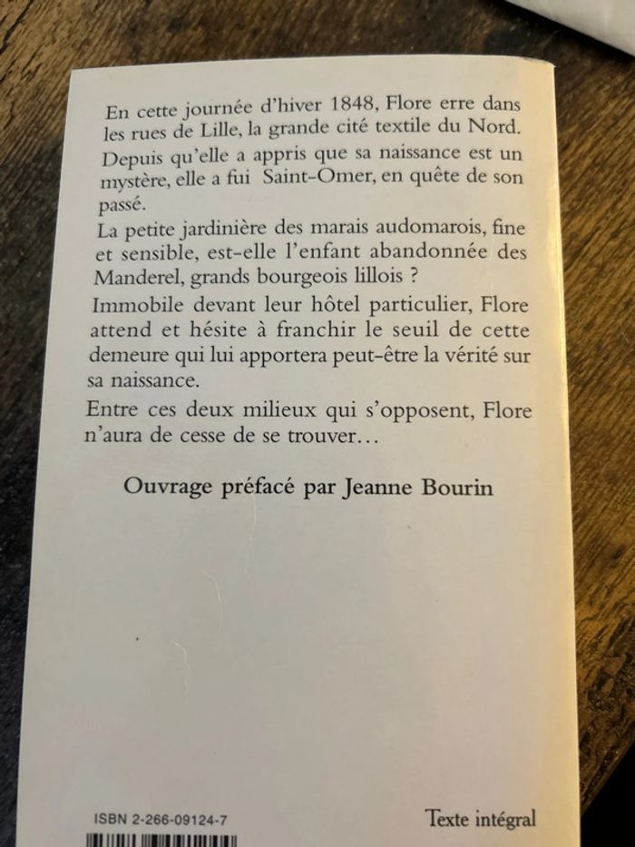 En cette journée d'hiver 1848, Flore erre dans les rues de Lille, la grande cité textile du Nord. Depuis qu'elle a appris que sa naissance est un mystère, elle a fui Saint-Omer, en quête de son passé. La petite jardinière des marais audomarois, fine et sensible, est-elle l'enfant abandonnée des Manderel, grands bourgeois lillois ? Immobile devant leur hôtel particulier, Flore attend et hésite à franchir le seuil de cette demeure qui lui apportera peut-être la vérité sur sa naissance. Entre ces deux milieux qui s'opposent, Flore n'aura de cesse de se trouver...