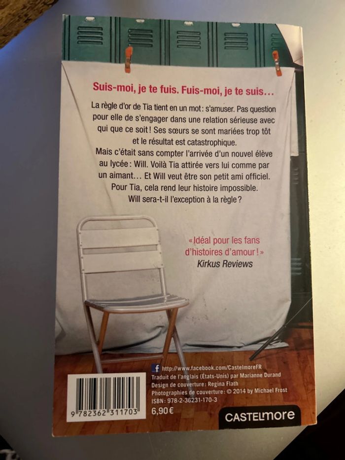 Suis-moi, je te fuis. Fuis-moi, je te suis... La règle d'or de Tia tient en un mot: s'amuser. Pas question pour elle de s'engager dans une relation sérieuse avec qui que ce soit! Ses sœurs se sont mariées trop tôt et le résultat est catastrophique. Mais c'était sans compter l'arrivée d'un nouvel élève au lycée: Will. Voilà Tia attirée vers lui comme par un aimant... Et Will veut être son petit ami officiel. Pour Tia, cela rend leur histoire impossible. Will sera-t-il l'exception à la règle ?