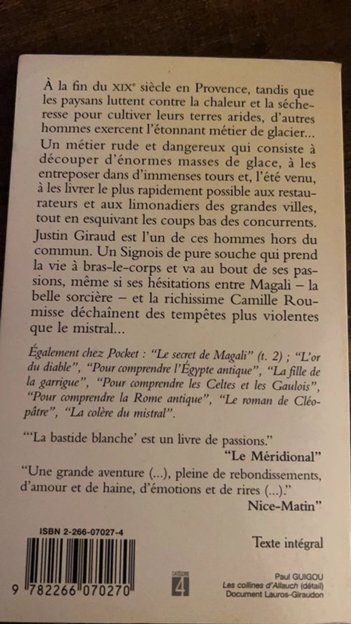 À la fin du xix siècle en Provence, tandis que les pavsans luttent contre la chaleur et la sécheresse pour cultiver leurs terres arides, d'autres hommes exercent l'étonnant métier de glacier... Un métier rude et dangereux qui consiste à découper d'énormes masses de glace, à les entreposer dans d'immenses tours et, l'été venu, à les livrer le plus rapidement possible aux restaurateurs et aux limonadiers des grandes villes, tout en esquivant les coups bas des concurrents.