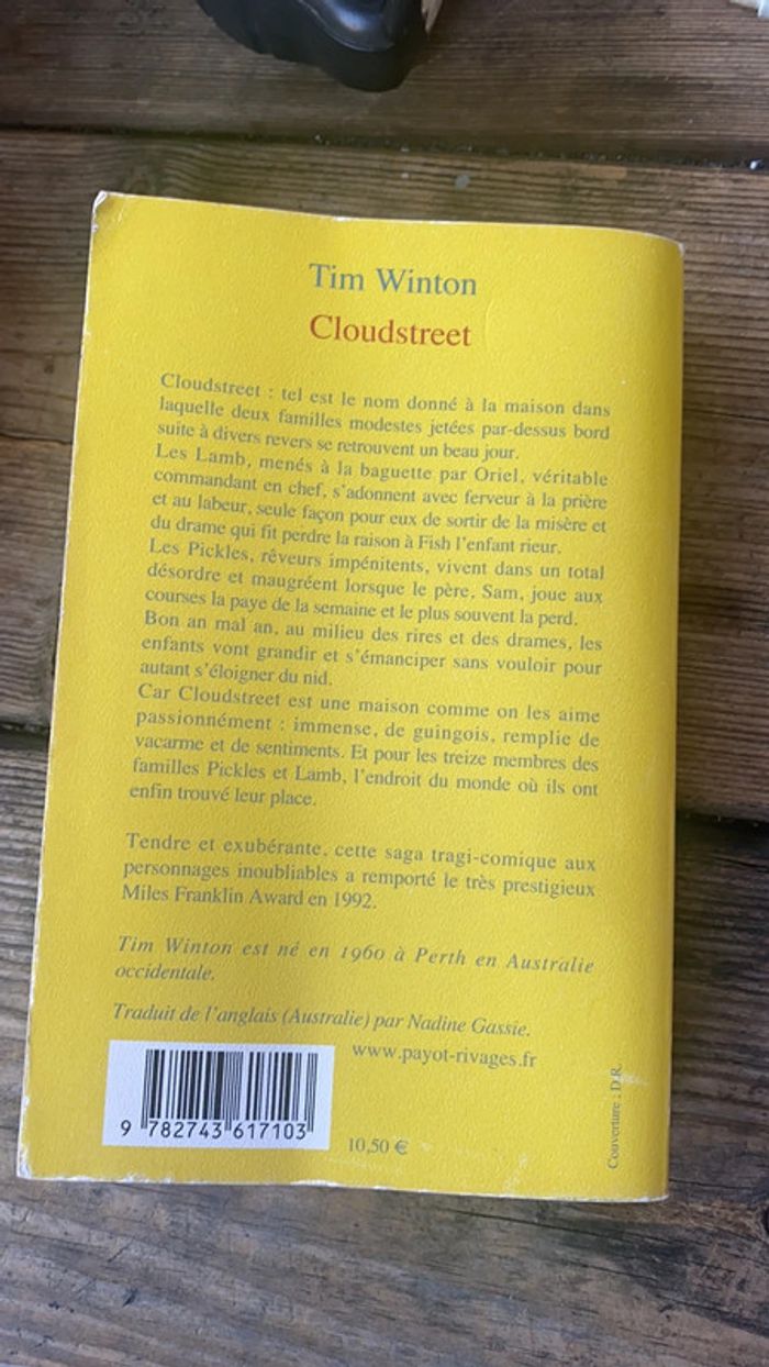 Cloudstreet : tel est le nom donné à la maison dans laquelle deux familles modestes jetées par-dessus bord suite à divers revers se retrouvent un beau jour. Les Lamb, menés à la baguette par Oriel, véritable commandant en chef, s'adonnent avec ferveur à la prière et au labeur, seule façon pour eux de sortir de la misère et du drame qui fit perdre la raison à Fish l'enfant rieur. Les Pickles, rêveurs impénitents, vivent dans un total désordre et maugréent lorsque le père, Sam, joue aux courses la paye de la semaine et le plus souvent la perd. Bon an mal an, au milieu des rires et des drames, les enfants vont grandir et s'émanciper sans vouloir pour autant s'éloigner du nid. Car Cloudstreet est une maison comme on les aime passionnément : immense, de guingois, remplie de vacarme et de sentiments. Et pour les treize membres des familles Pickles et Lamb, l'endroit du monde où ils ont A