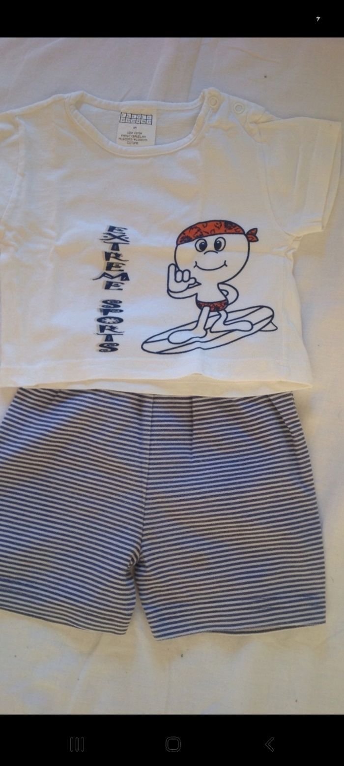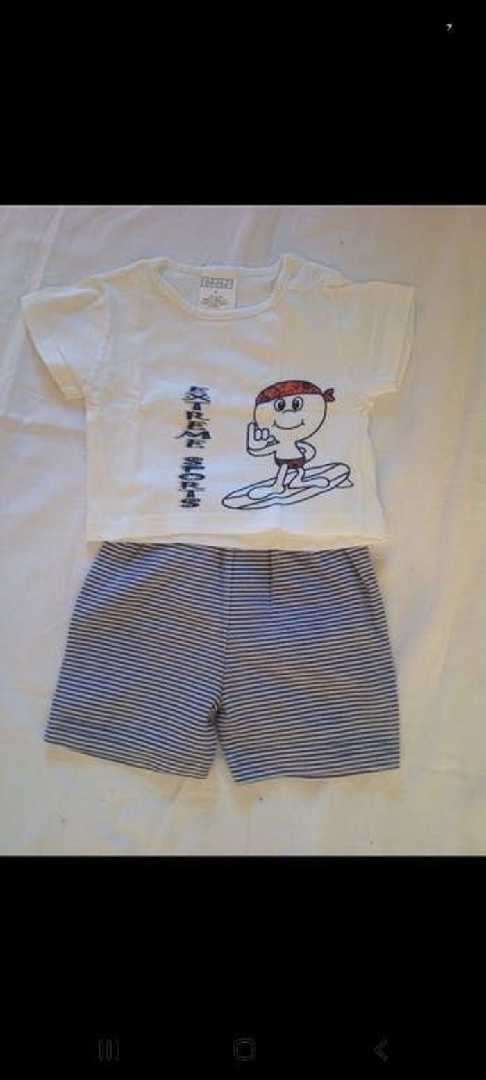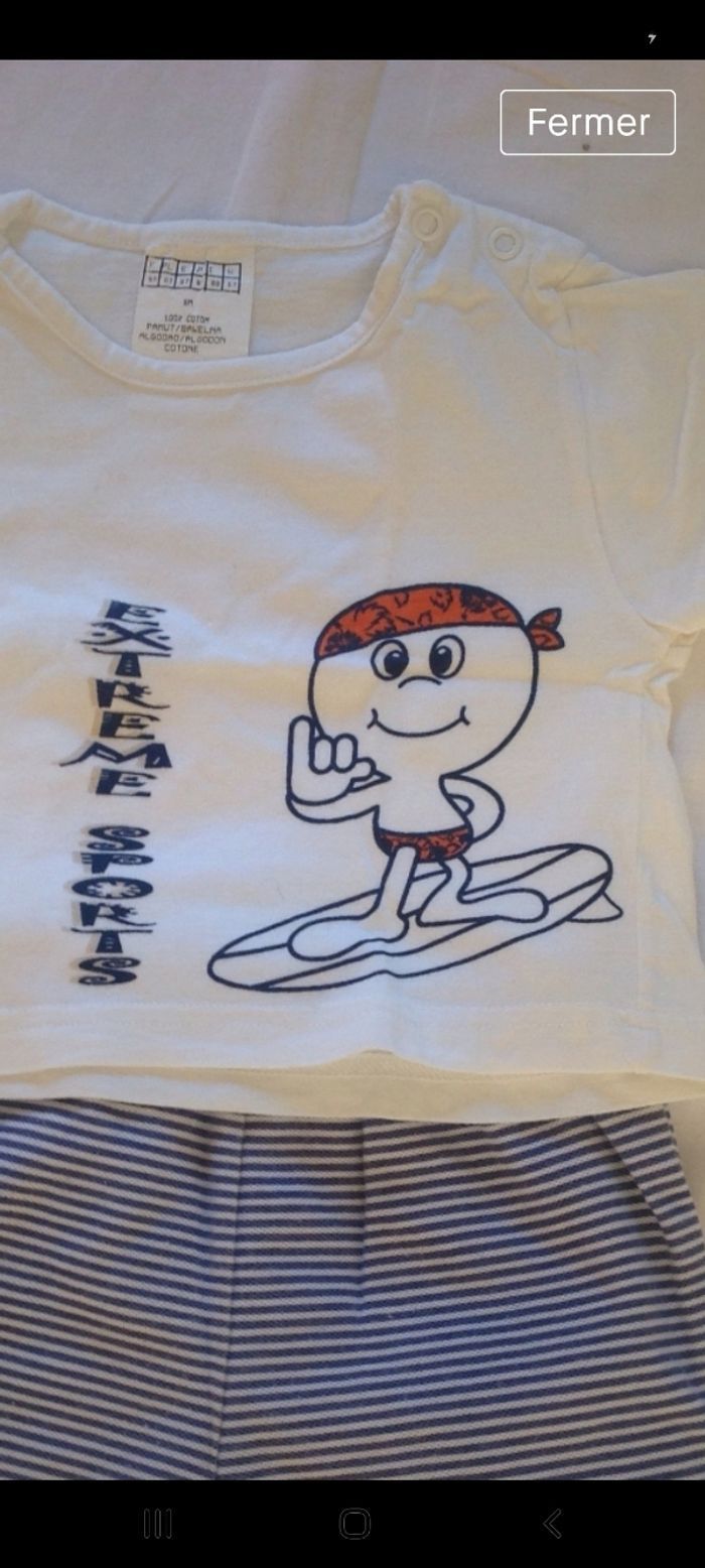 Ensemble été garçon short rayé bleu et blanc et tee-shirt blanc en 6 mois garçon6mois
