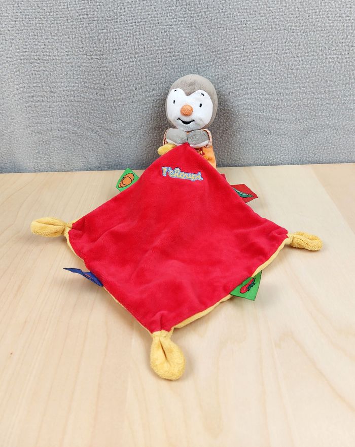 Doudou plat peluche Tchoupi NICOTOY salopette orange mouchoir rouge jaune fraise - photo numéro 1