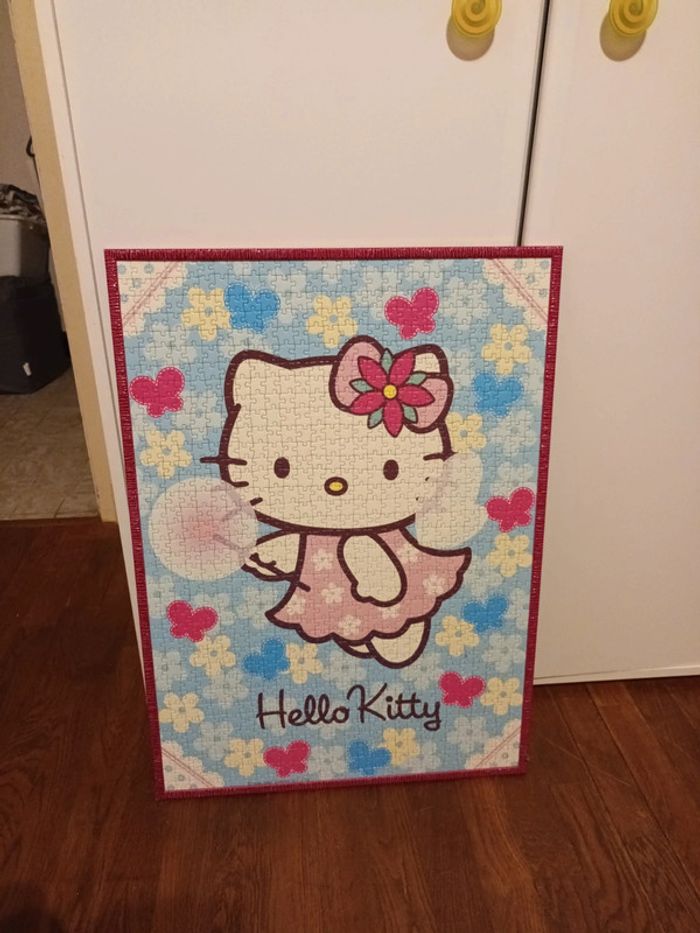 Cadre puzzle 52cm * 72cm Hello kitty Entourage rose fuschia Très bon etat