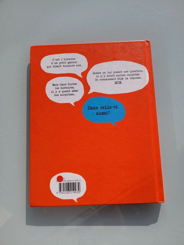 DAVID FOENKINOS SOLEDAD BRAVI LES PETIT GARÇON QUI DISAIT TOUJOURS NON Voici l'histoire d'un petit garçon qui disait toujours non. Quand on lui posait une question, il n'y avait aucune surprise. On connaissait déjà la réponse : non. Mais un jour, une nouvelle élève arrive à l'école. Et l'histoire se transforme avec des oui... Ah l'amour ! Le texte drôle, vif et impertinent de David Foenkinos, porté par les illustrations expressives de Soledad Bravi, dresse le portrait d'un petit garçon obstiné qui cache une délicate sensibilité. Livre en très bon état Mes livres par thème : #livrelesemotionsmooglou Mes autres livres enfants : #livreenfantmooglou