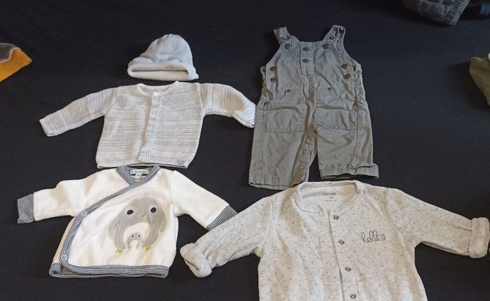 Vêtements 0-1 mois 2 gilets 1 bonnet 1 salopette 1 pyjama