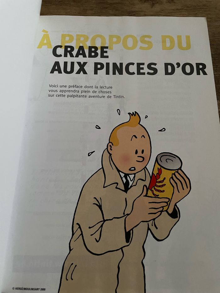 B.D. Les aventures de Tintin. Le crabe aux pinces d’or Hergé Casterman Couverture souple Année 2000 Très bon état