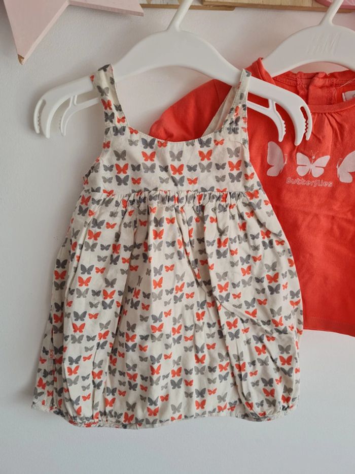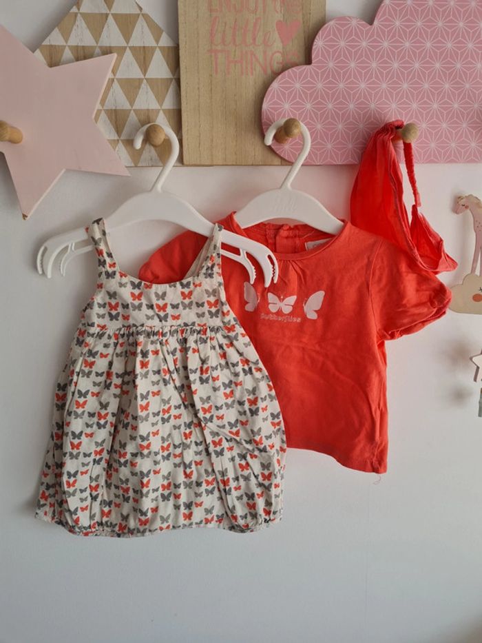 Ensemble, Obaibi, comprennant la robe (micro tache, voir photo) le t shirt (petite tache a larriere, ne se voit pas porté si il est en dessous de la robe, la culotte et le bandeau (parfait etat) #nicolasgtaille6mois